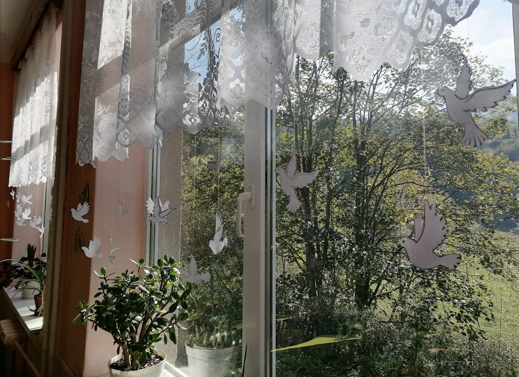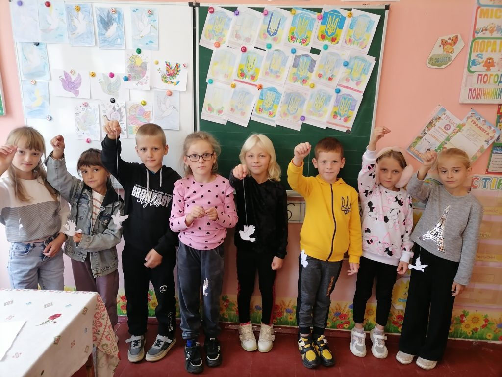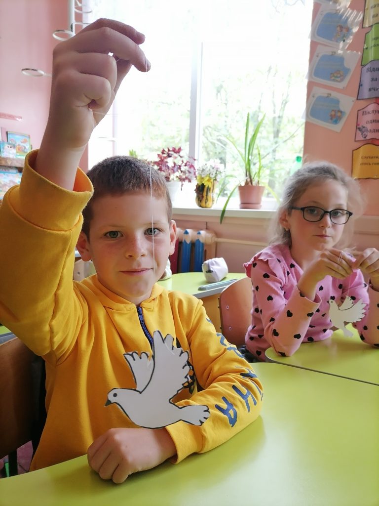 21 вересня відзначають День миру. Символом цього свята є білий голуб. Голуби – це дуже миролюбиві птахи.Вони люблять спокій та не виявляють ворожості до інших тварин. Разом з вихованцями ГПД виготовили голубів і надіємось,що вони якнайшвидше принесуть на рідну Україну мир та спокій.