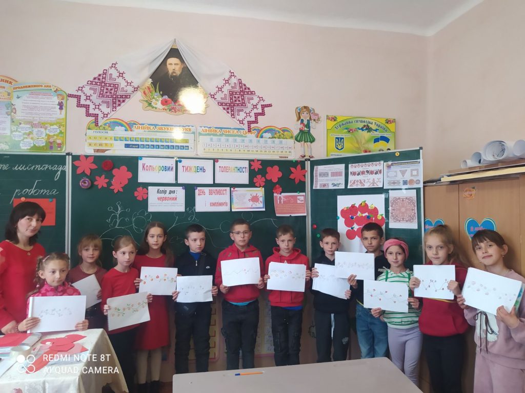 Сьогодні був четвертий день толерантності – день ввічливості й компліментів. Колір дня – червоний, що символізує нестримне прагнення до успіху, драматизації переживань, відчуття повноти життя. Червоний колір – це стимул до будь-якої діяльності, активності в усіх сферах життя. З учнями 4 класу, на уроці мистецтва (образотворчого), було проведено тренінг “Всі ми – різні, всі ми – рівні!”, метою якого було викликати вміння бачити індивідуальне в кожній людині, розвивати уважність до інших людей та ін. . Під час тренінгу було використано цікаві вправи, а саме: вправа “Мішечок порад”, вправа “Дерево очікувань”, вправа “Клас толерантності”. На уроці було проведено також бесіду про орнамент, його види, декоративно-ужиткові вироби кримських татар та вдало поєднано мистецтво з іншими предметами: математикою, літературним читанням. Учні малювали орнамент із задоволенням.